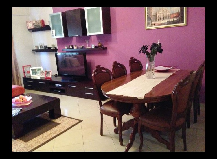 Apartamenti ka nje siperfaqe prej 90 m2 dhe eshte i vendosur ne katin e dyte te nje pallati te ri.