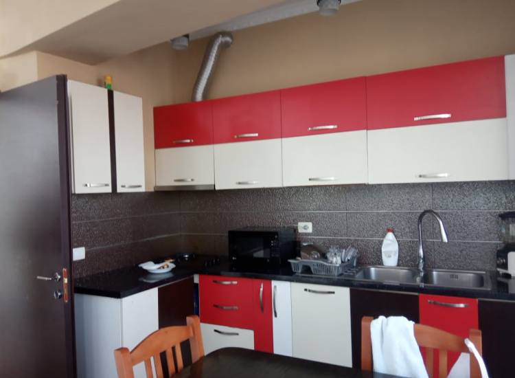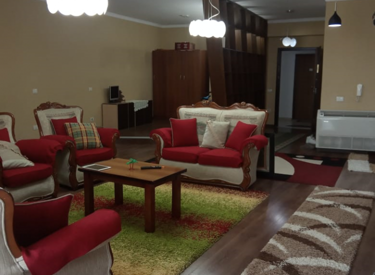Apartamenti eshte I organizuar ne tre dhoma gjumi,nje dhome ndenje,kuzhina dhe dy tualete.